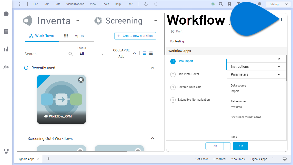 | 1️⃣ Signals Apps page ➡ Workflows ➡ select workflow to export |