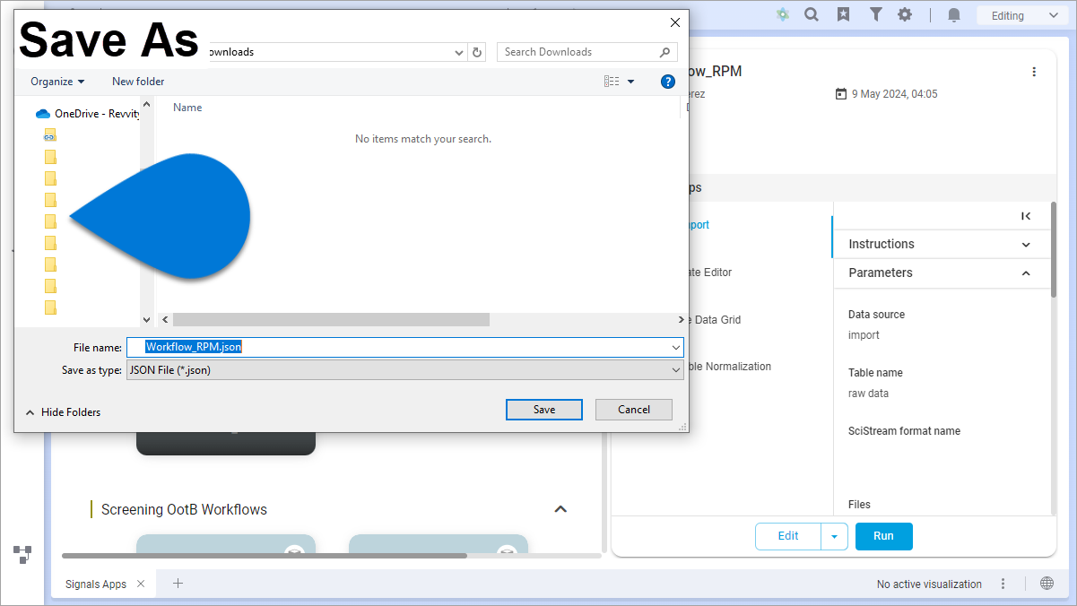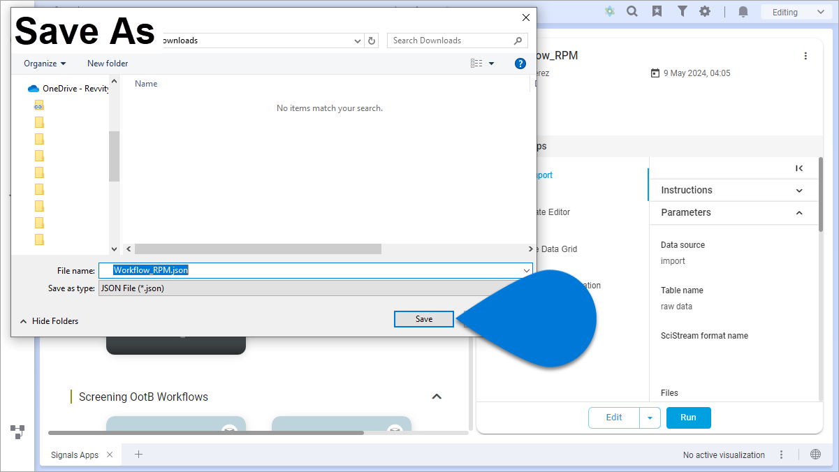 [Save] button. In this case, the .json file will be saved in a .zip folder.