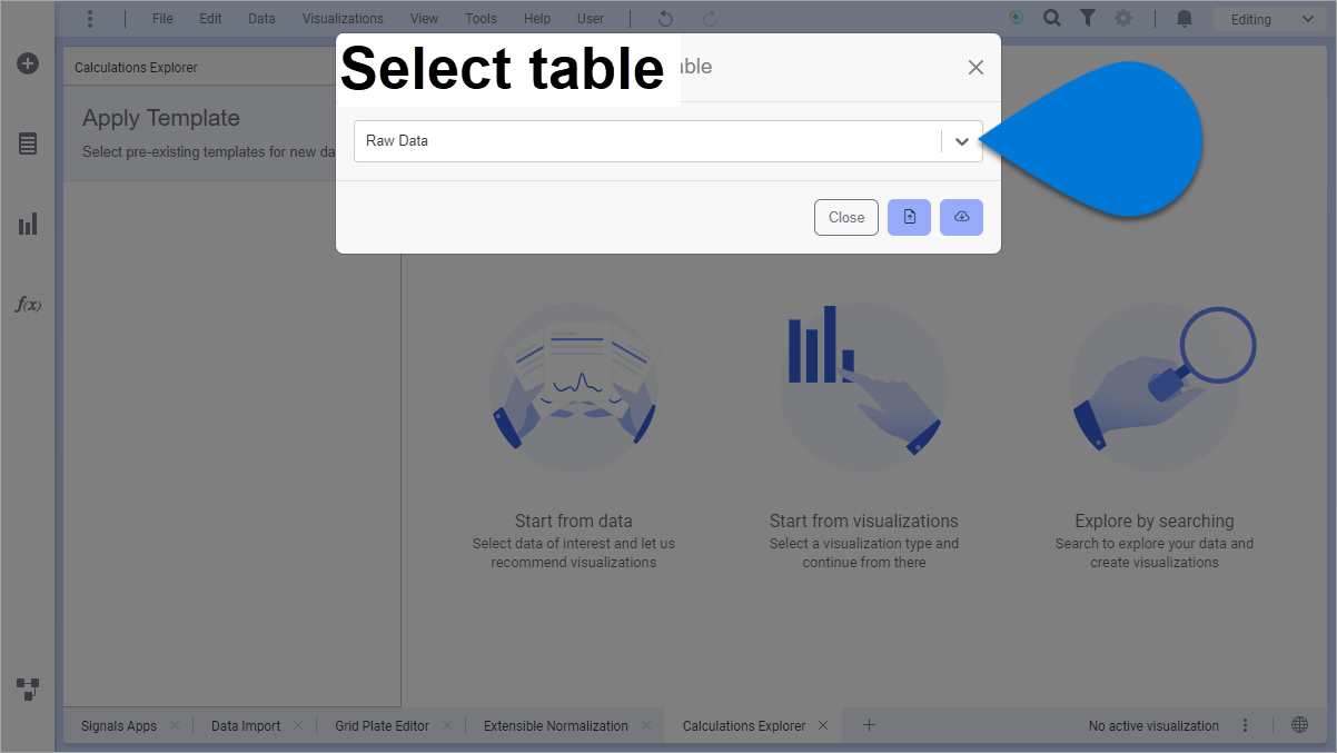 | 1️⃣ Calculations Explorer panel ➡ select Apply Template | |