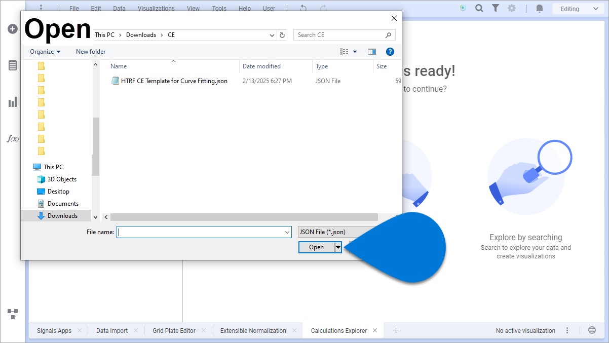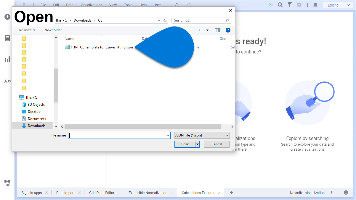 ✔ Calculations Explorer templated must be saved as a .json file locally.