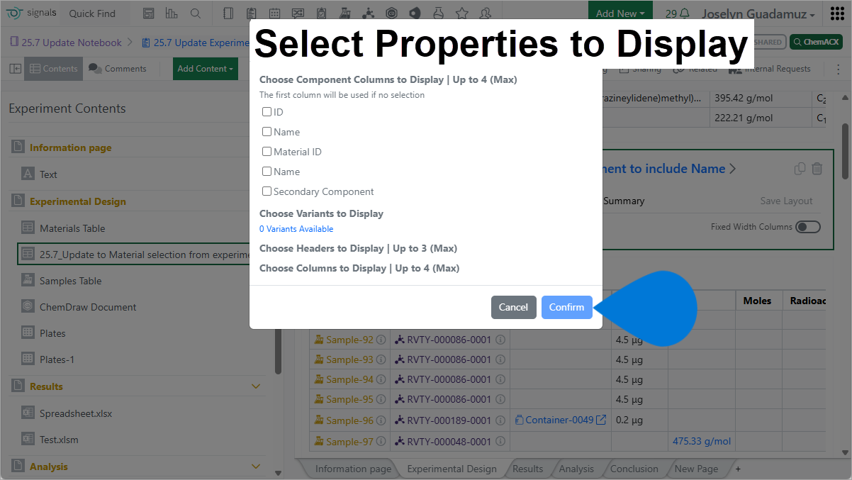 | 7️⃣ Select Properties to Display window ➡ select | |