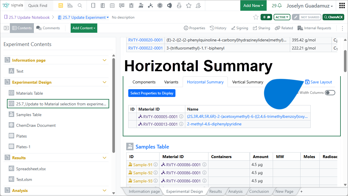 - The Horizontal Summary view renders a comparison view to see all the Variants, primarily to facilitate a weighing sheet.