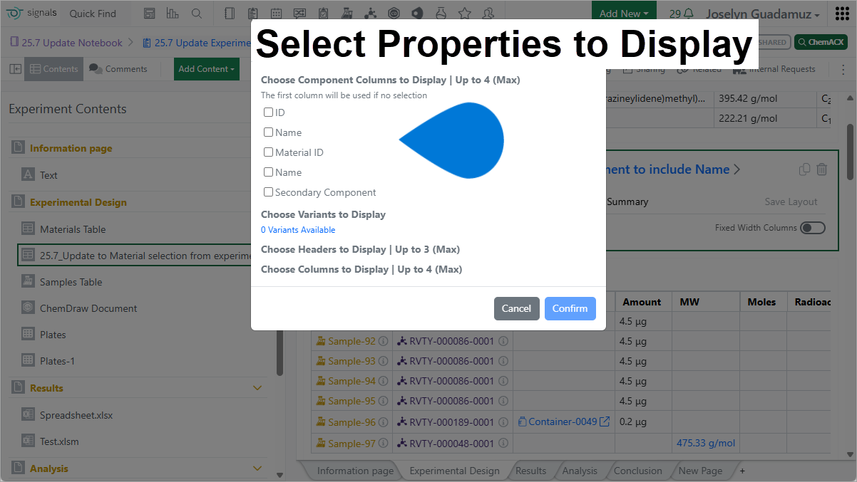 | 3️⃣ Experiment Contents pane ➡ select | |
