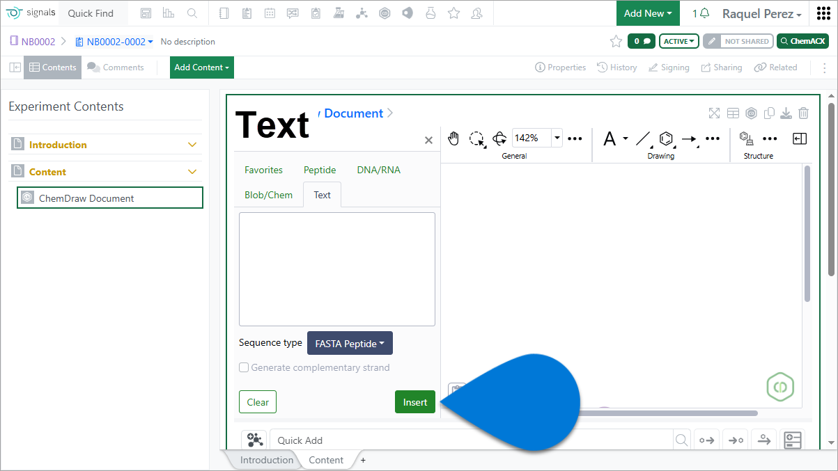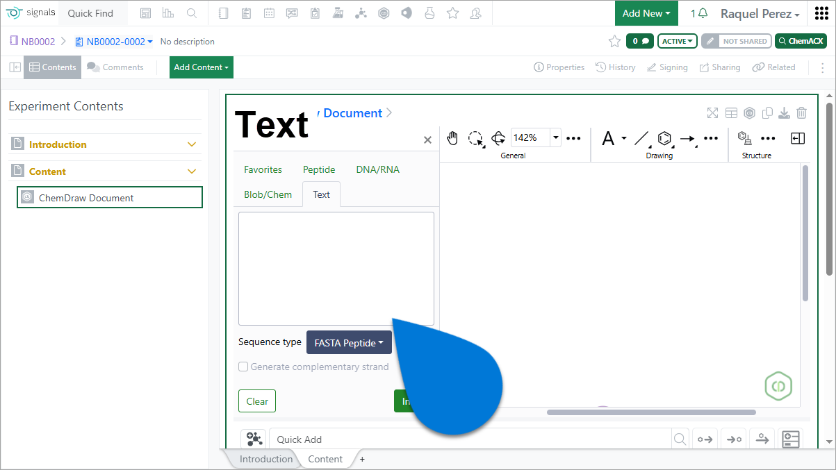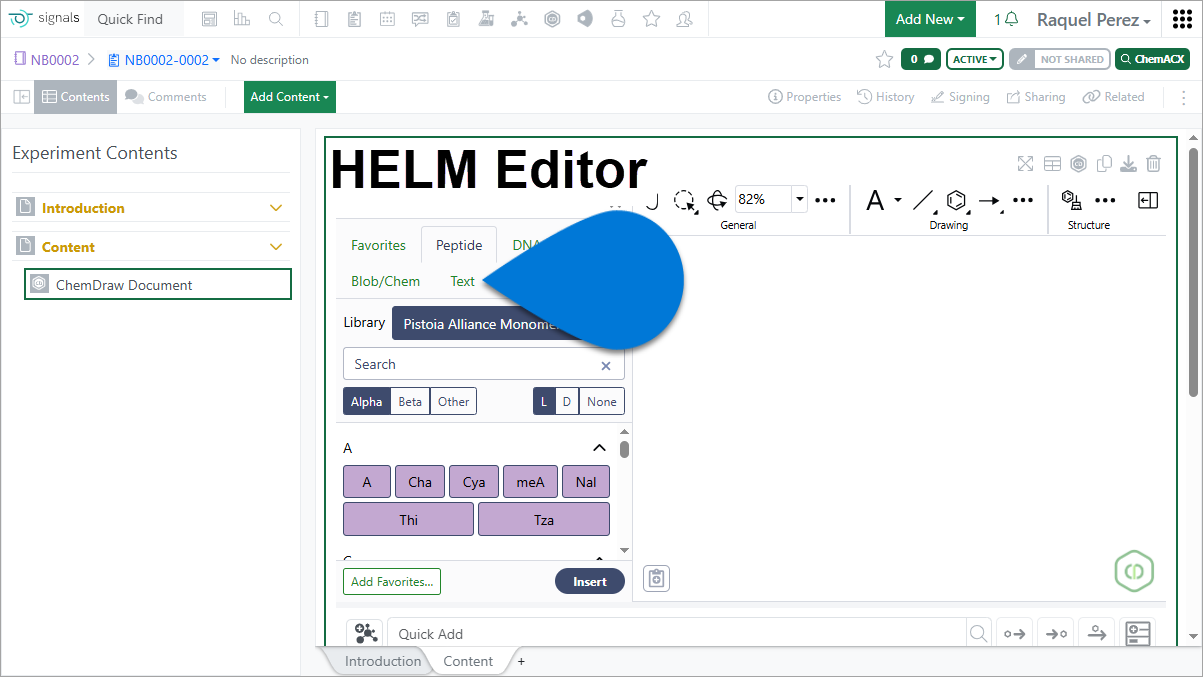- When pasting a FASTA peptide sequence with header information into a Chemical Drawing, either directly or via the Text tab of the HELM Editor, the FASTA header will appear as an annotation.
