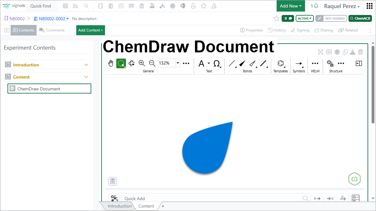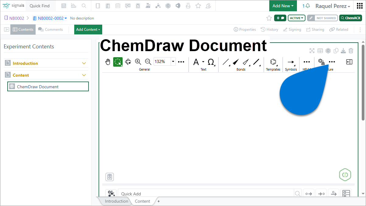 | 2️⃣ ChemDraw Document canvas ➡ chemical structure ➡ select substitution site ➡ add new atom/structure |